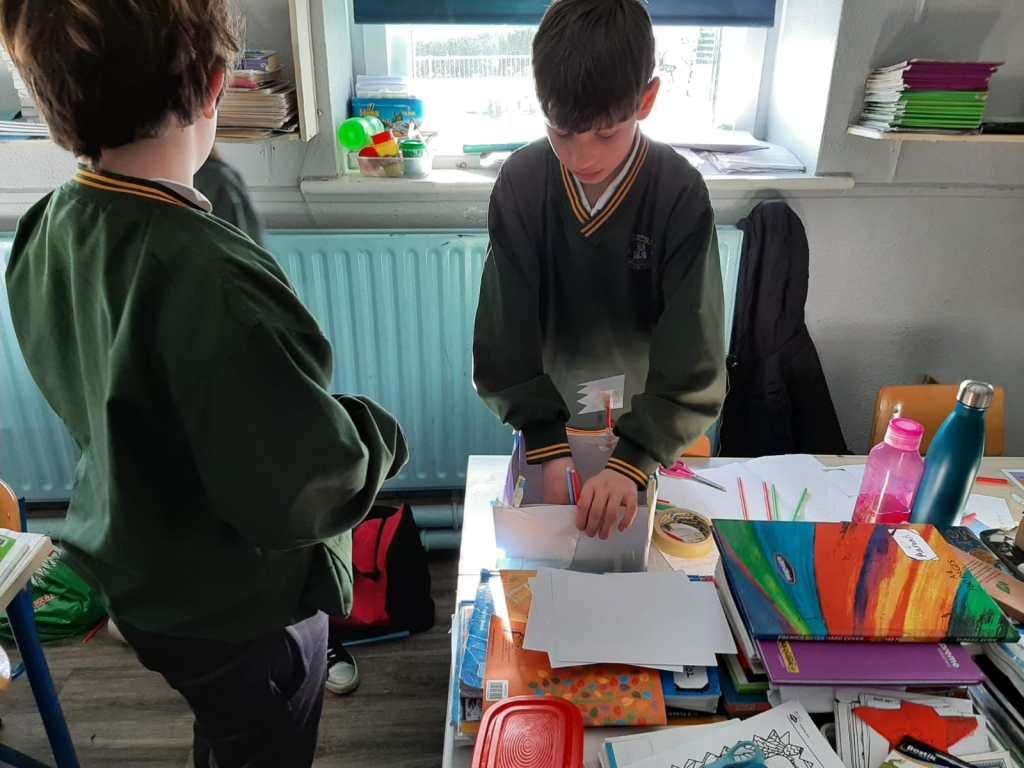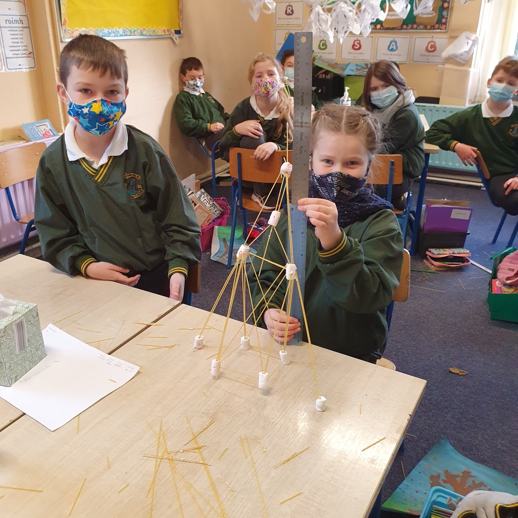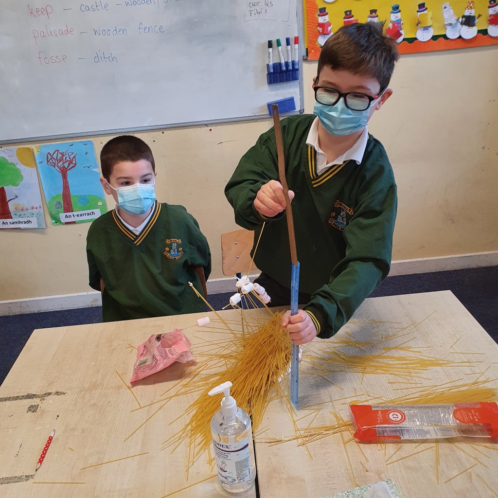 We then moved on to working on pulleys, we were delighted to have Mr. Michael Browne do a work shop on pulleys. We worked on different types of pulleys and how to use materials to make them. We spoke about how this type of system would be used long ago in construction.