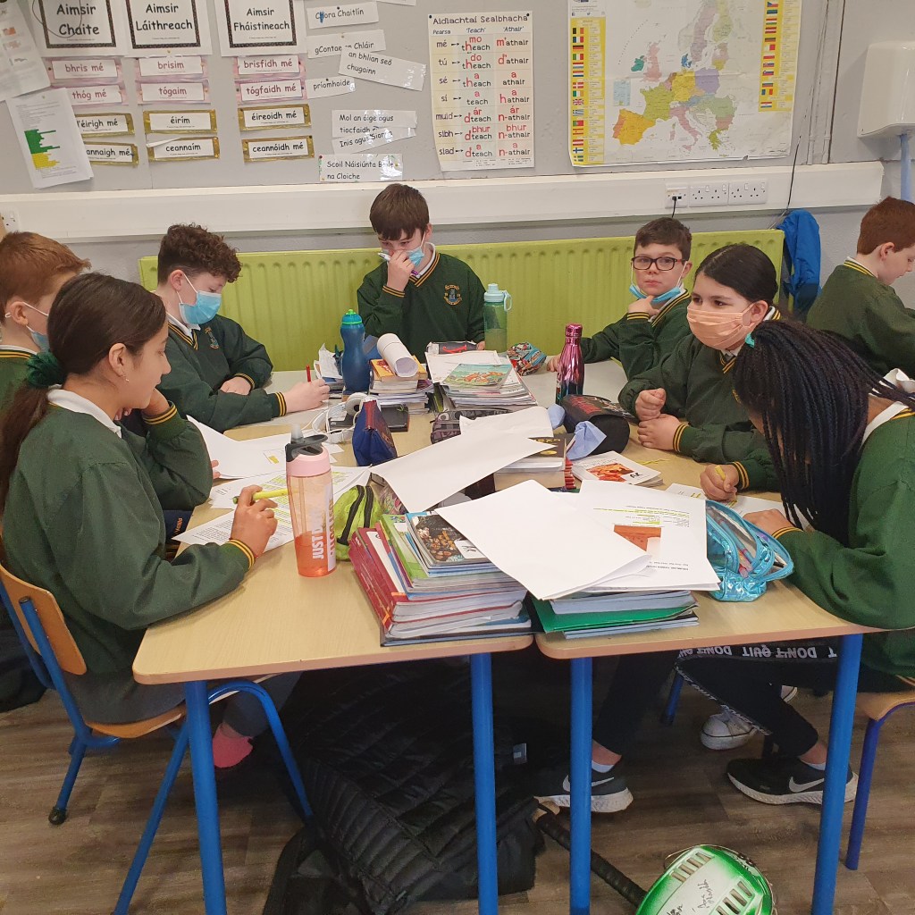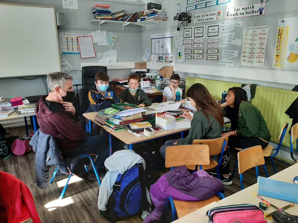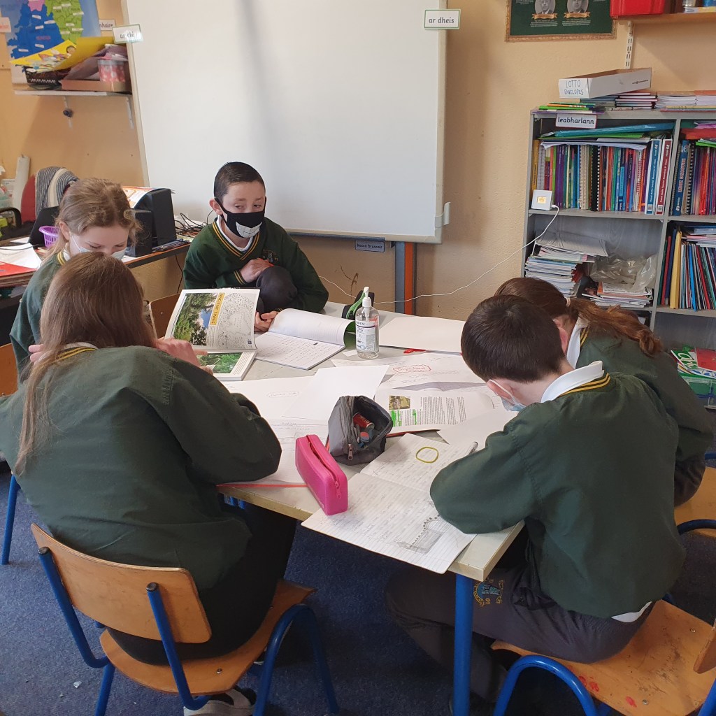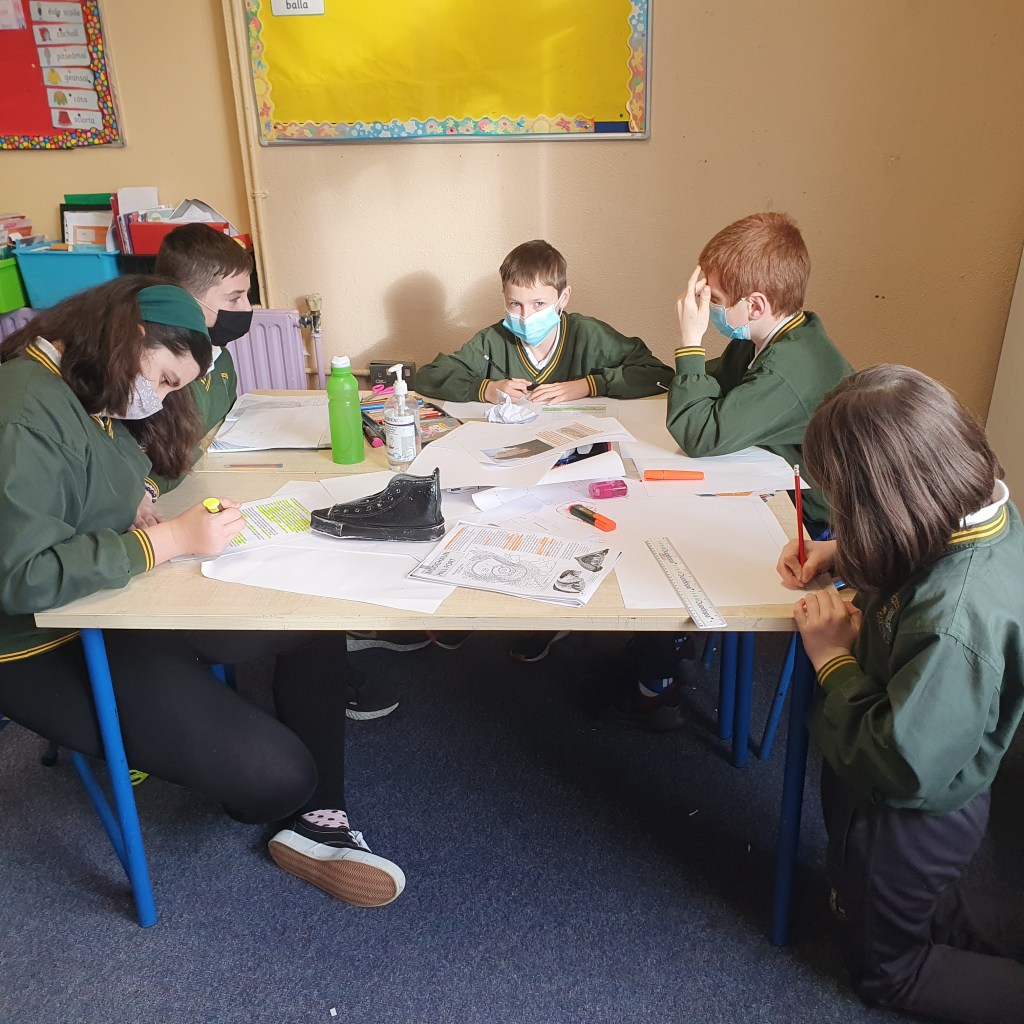 They then presented this back to everyone. We were lucky to have Mr. Colm Liddy come and then work with each group. He spoke with them about their research, created many discussion points and showed lots of photographs of the current state of some of the castles. It was an excellent opportunity for the class to talk to a local historian and get his advice on it. Colm also helped the children to pinpoint each castle on a map of the parish.