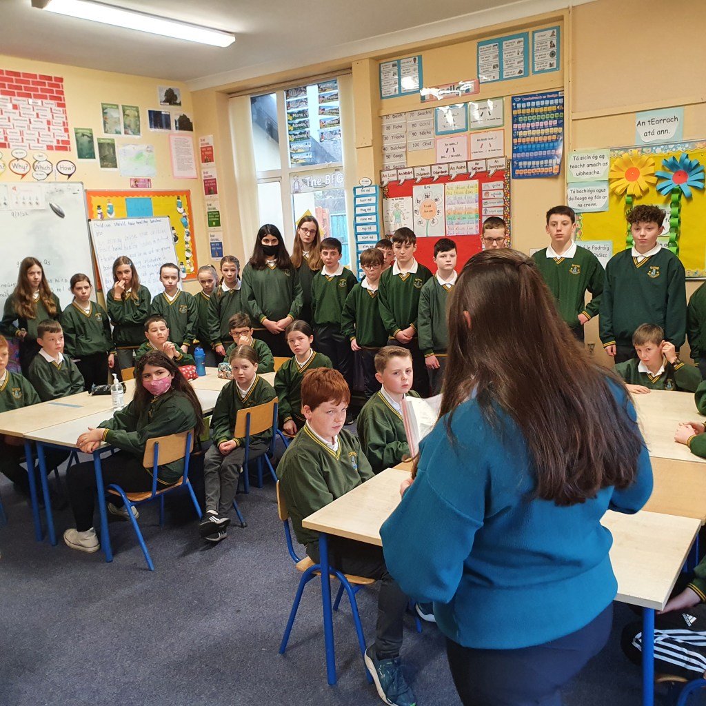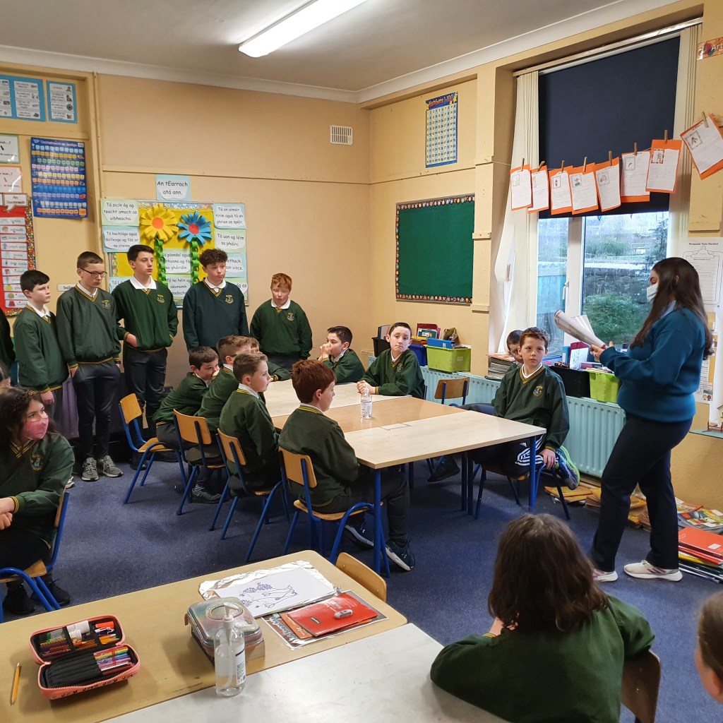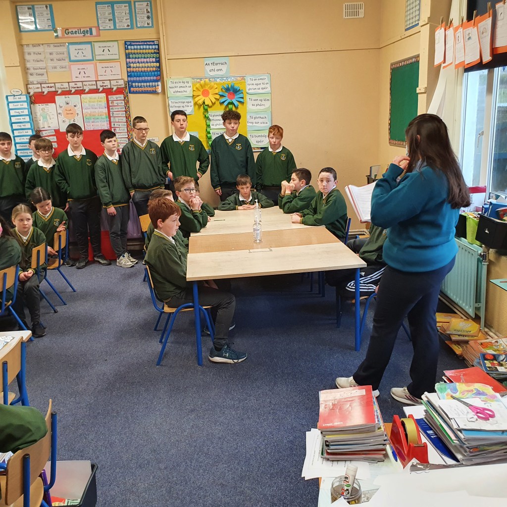 We were also very luck to have past pupil Ms. Róisín Carmody come in a speak with the classes about a project she did on Stonehall Castle. Her grandfather was present on the day of the destruction of the remains of that castle. Hearing his account of it was very beneficial for the children.